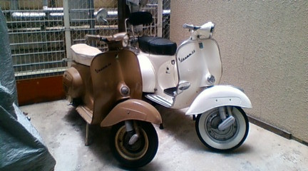 | 第2回目のレポートです。 皆さんは知っていましたか?ビッグランブリングでもらったスクーターは岡山にあるバンナップスに取りに行かないといけないことを。 僕は知らなくて・・・ どうしようかなと悩んでいたらベスト賞でクイーンを取った松君が「乗って帰ろうか?」と声をかけてくれました。 どうしたのかと事情を聴くと松君のスクーターが故障したみたいで帰る足がないとのこと。これはラッキー!!! 松君とは家がめちゃめちゃ近所でこんなにラッキーなことがあってていいのでょうか!?でもスモール50で帰ってもらうのはいくらなんでもしんどいし・・・ なので僕は姫路港まで車で来ていたので松君に160GSを乗って帰ってもらって僕は姫路港まで50を乗って帰るってゆうのは?と提案してみた。 そして、それぞれで帰ることになった。松君のスクーターが壊れてくれたおかげで(笑)岡山まで取りに行かなくてすんでかなりラッキー! 松君にはスクーターを乗って帰ってもらったり、苦手なパソコンを親切に教えてもらったり、すごく感謝してます。ほんとうにありがう!!! そして我が家にスクーターがやってきました。 ![]() ![]() マンションにおいていたら、管理人に何台おくつもりと注意されたためお店の駐車場に移動 とりあえずは海の潮風にあたったのでザビがきそうなので友達を誘って洗車に行きました。ベスト賞でジャック賞を取ったジュンキチ君です。 スモールはまだナンバー登録をしていないのでお留守番。GSとLIで行きました。洗車場の高圧洗浄機はすんごくてサイドパネルが圧力で吹っ飛ばされちゃいました! 結構大変。でも洗車場でする洗車は家でするよりやっぱりいいですね。アッとゆうまにピッカピカになって僕もジュンキチ君もかなり満足しました。 スモールは家で軽く洗車しました。 僕はけっこうてきとうに洗車をしてたのにたいして、ジュンキチ君はかなり丁寧に洗車をしてました。 これからスモールをどういう風にしていこうか・・・50のままだと物足りないのでボアアップ。あとは・・・ 考え始めるとキリがないのでちょっとずつちょっとずつ触っていこうかなと思っています。 ネットでいろいろ観ていたらやっぱりどうしていいのか分からなくなってきました・・・ ボアアップしようか100のエンジンに積み替えようか。と考えながらオークションを観ていたら気になる商品を発見! ハンドルがSTD、フェンダーもSTD、ボディーはスモール、エンジンは100ccの部品取り車が!!! これは使えそうなのでとりあえずゲットしました。結構安く手に入れることができました。 ハンドルとフェンダーとエンジンを使おうと思っています。 スクーターをばらしてみました。 エンジンはフライホイールとホイルケース、シリンダーヘッドカバーがなく配線もなんかグチャグチャ・・・ちょっと触るのがめんどくさ・・・ とりあえず、第2回目のレポートは、このへんでおわらさせていただきます。。。 |