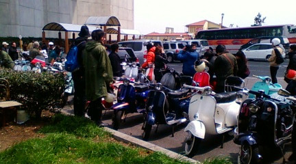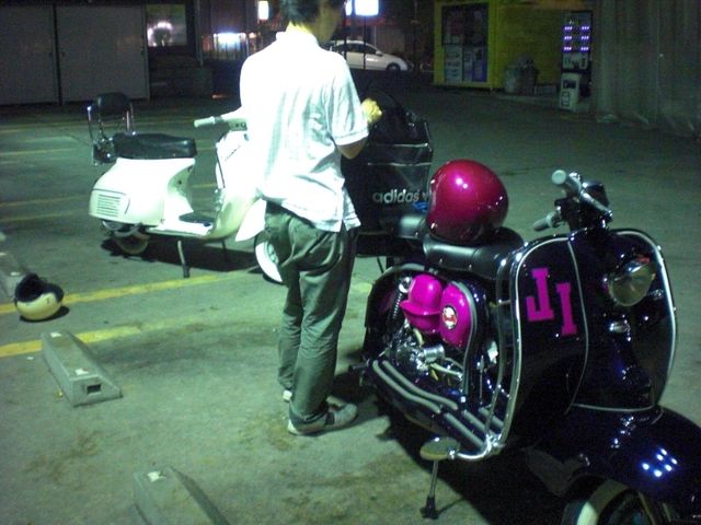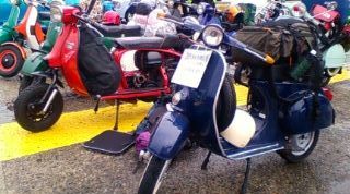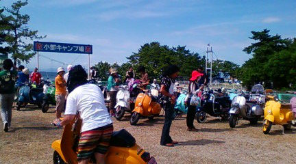 高校生の時からべスパにハマり18歳の時、大阪に来てはじめての大きな買い物がべスパ100。(今は売っちゃいましたけど) では、これから13回ビックランブリングの朝の出来事からいろいろ書いていきたいと思います。 ビックランブリングは2日目からの参加でした。まず、姫路まで車にスクーターを乗せて行きました。 とりあえず、はずれた肩をはめないといけないのでスクーターから手を放し肩をはめようとしたのですがなかなかはまらず、このままビックランブリングじゃなく病院に!?