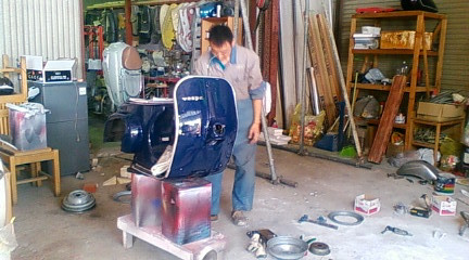 フェンダーは旧いパテの層が分厚く叩かずパテのみで造られていた感じでやぼったい物だった。その分剥離に手間取ったがリフレッシュして軽快な感じ。 こないだ久しぶりにスクーターの集まりがありました。